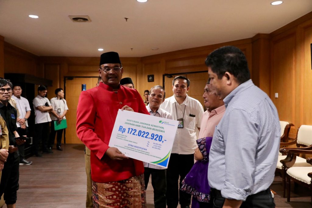 Usai menyerahkan santunan, Pj Gubernur Safrizal dalam keterangannya menyambut baik atas program BPJS Ketenagakerjaan tersebut. Penyerahan secara simbolis oleh dirinya itu, katanya, menjadi bukti manfaat dari adanya lembaga perlindungan sosial kepada masyarakat maupun masing-masing kelompok kerja.