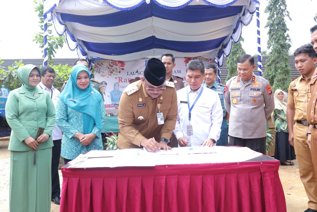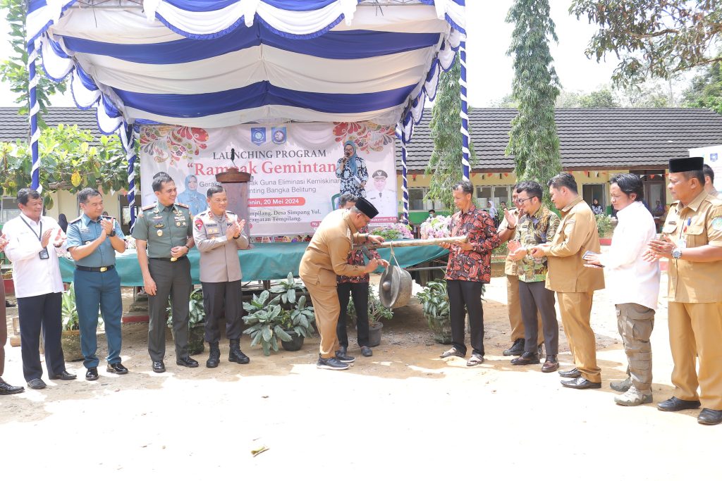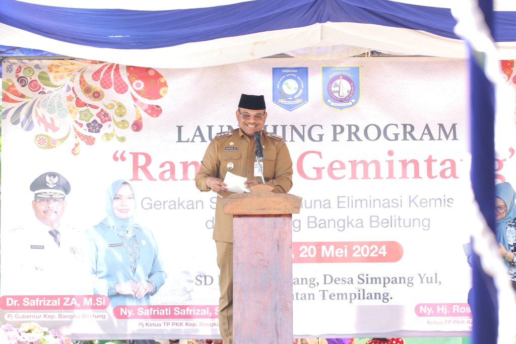 TEMPILANG – Penjabat (Pj) Gubernur Kepulauan Bangka Belitung (Kep. Babel) Safrizal ZA bersama Pj Ketua PKK Provinsi Kep. Babel Safriati Safrizal melaunching Gerakan Serempak Guna Eliminasi Kemiskinan dan Stunting Bangka Belitung (Rampak Gemintang), Senin (20/5/2024) di SDN 17 Kecamatan Tempilang, Kabupaten Bangka Barat.
