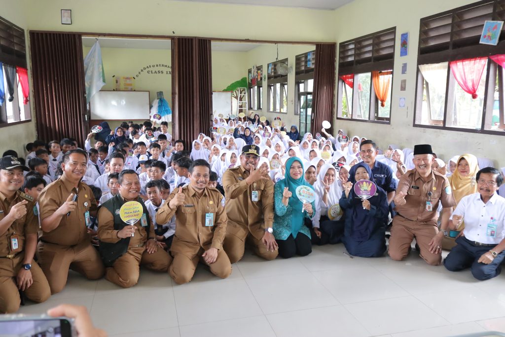 PUDING BESAR – Penjabat (Pj) Gubernur Kepulauan Bangka Belitung (Kep. Babel) Safrizal ZA berkesempatan menyambangi SMP Negeri 1 Puding Besar, Senin (20/5/2024) dalam rangka peninjauan kegiatan budaya konsumsi pangan Beragam, Bergizi, Seimbang dan Aman, atau B2SA Go to School.