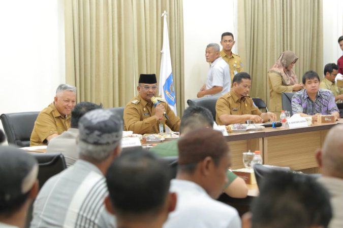 PANGKALPINANG – Masyarakat Kabupaten Bangka Barat temui Penjabat (Pj) Gubernur Kepulauan Bangka Belitung (Kep. Babel) Safrizal ZA guna menyampaikan harapannya terkait perizinan HTI PT Bangun Rimba Sejahtera. Kedatangan warga yang didampingi Bupati dan Wakil Bupati beserta Forkopimda Kabupaten Bangka Barat diterima langsung oleh Pj Gubernur Safrizal, Sekda Fery Afriyanto beserta Forkopimda Pemprov. Kep. Babel di Ruang Rapat Batu Rakit, Selasa (16/7/2024).